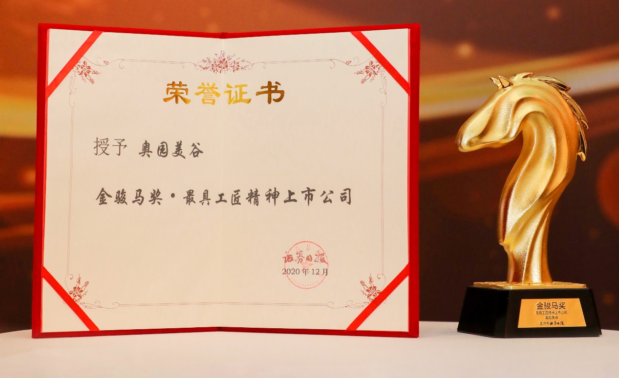 12月11日,由《證券日?qǐng)?bào)》社主辦的“第四屆新時(shí)代資本論壇”在北京隆重召開(kāi),并揭曉“2020年度中國(guó)證券市場(chǎng)金駿馬獎(jiǎng)”,奧園美谷憑借不斷提升的公司治理水平、持續(xù)改善的經(jīng)營(yíng)管理情況、清晰明確的未來(lái)發(fā)展戰(zhàn)略,榮膺“金駿馬獎(jiǎng)·最具工匠精神上市公司”。