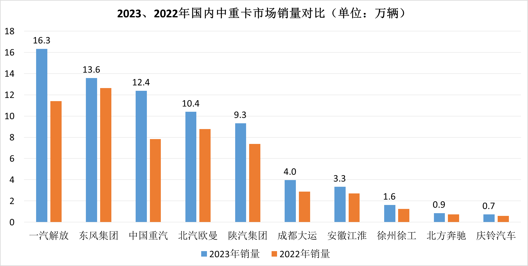 2023年1-12月中重卡市場(chǎng)銷量表(單位:輛)