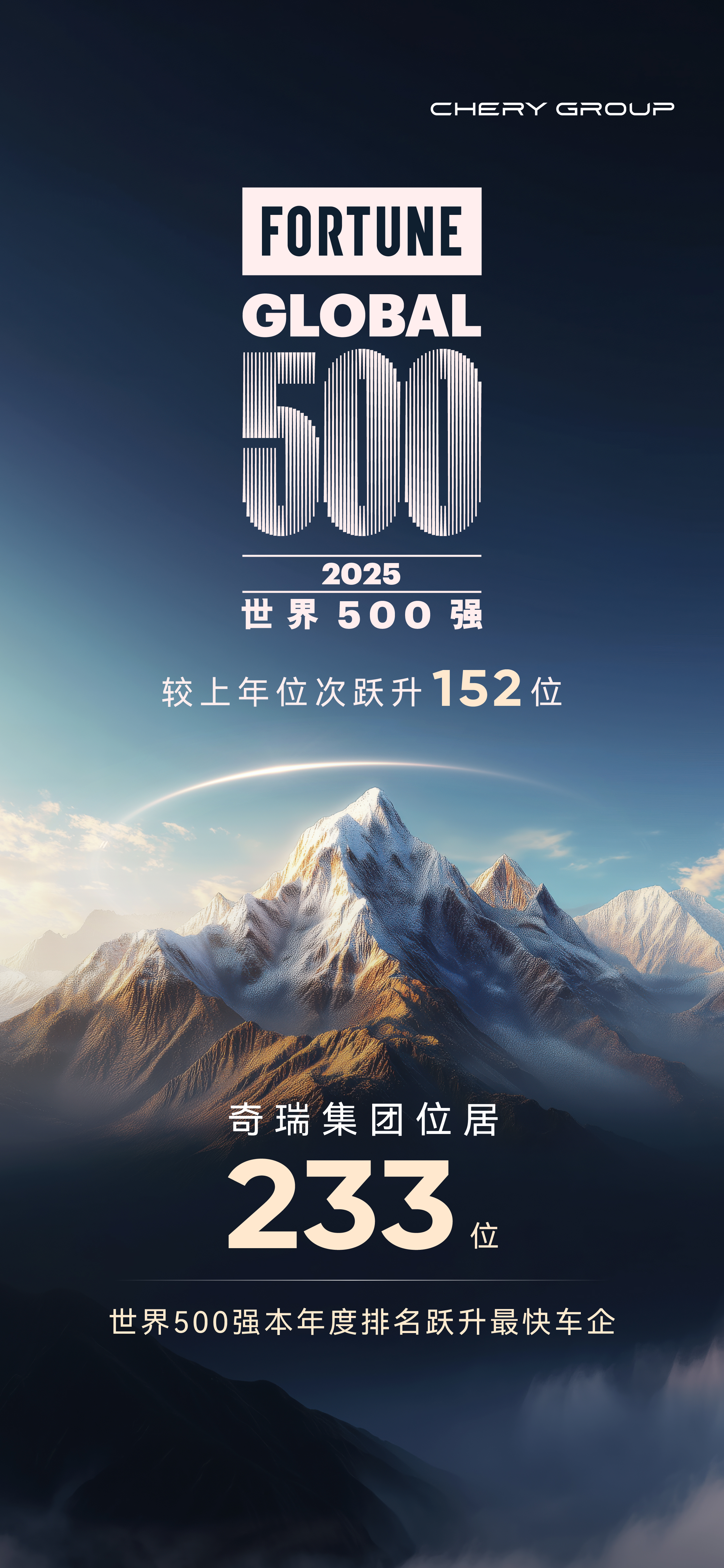本報(bào)訊 (記者劉釗)7月29日,2025年《財(cái)富》世界500強(qiáng)榜單全球同步揭曉。奇瑞控股集團(tuán)有限公司(以下簡(jiǎn)稱“奇瑞集團(tuán)”)再度登榜,位列第233位,較2024年躍升152個(gè)位次,成為年度躍升速度最快的車企。
