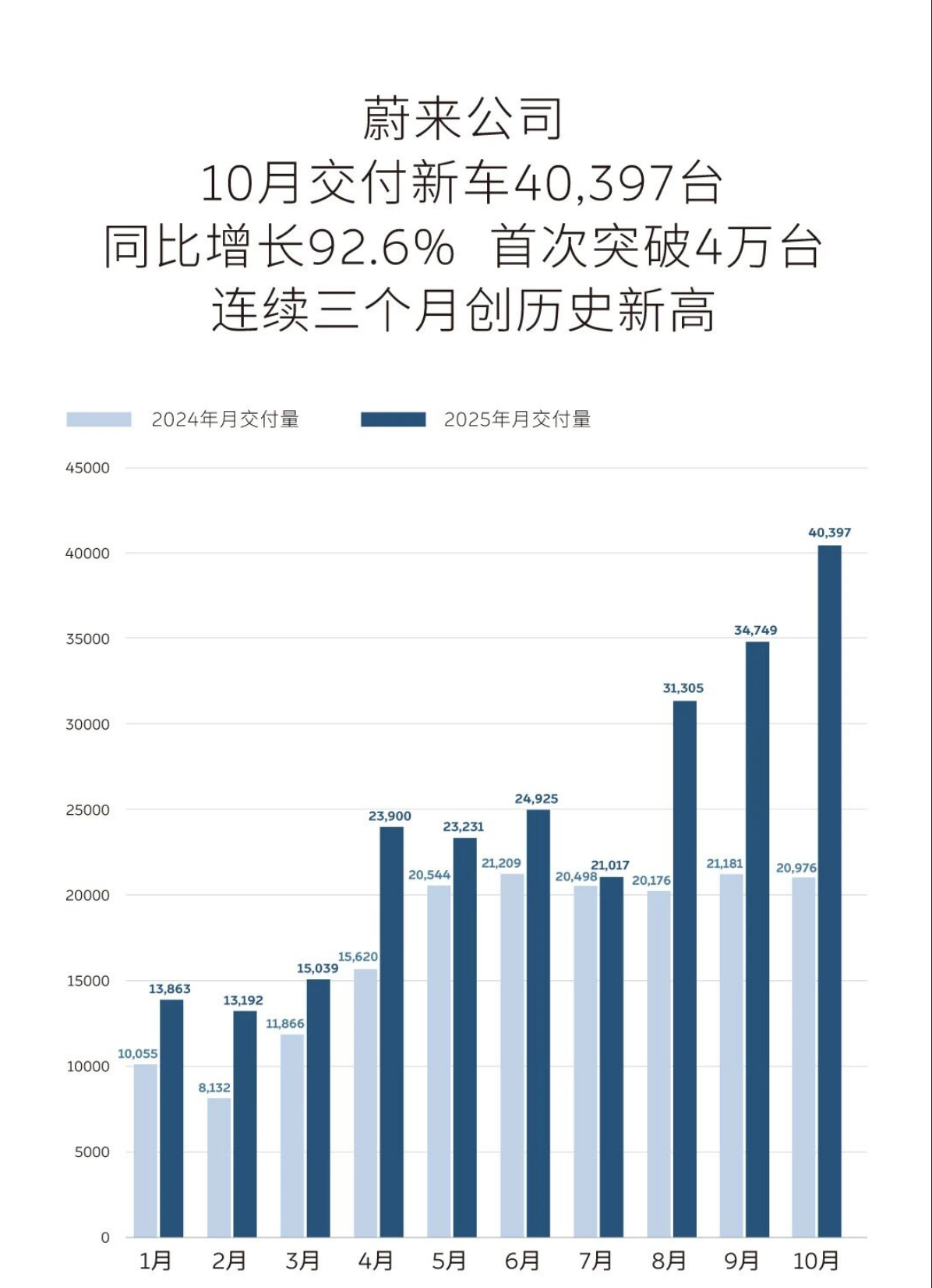 在媒體發(fā)布的這份交付榜單中,首次達(dá)成月交付量超四萬的蔚來公司,成了唯一一個(gè)在純電賽道奮力搏殺了十一年的“孤勇犟種”。蔚來用十一年的時(shí)間,把自己變成了一家純粹又堅(jiān)定只趟純電這條并不好走的路的中國(guó)新能源車企。