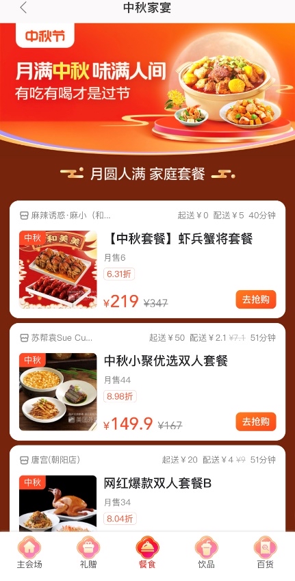“團(tuán)圓餐”訂單增長574.56% 外賣助力中秋云團(tuán)圓
