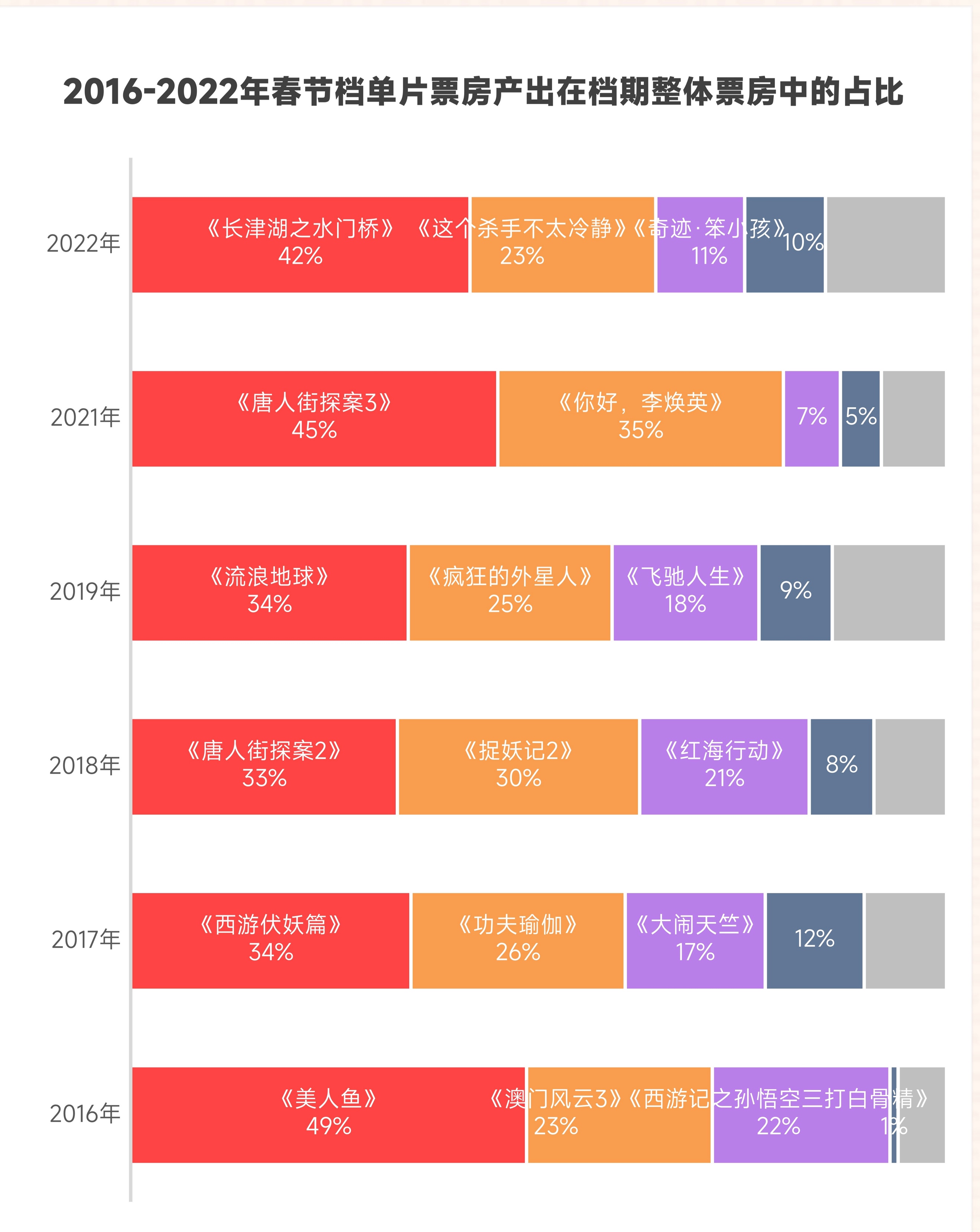 燈塔報告顯示,2月1日大年初一,春節(jié)檔首日攬下14.5億票房,與2019年持平,后續(xù)走勢也與疫情前一樣平緩回落。今年春節(jié)檔延續(xù)了下沉趨勢,三線城市的票房占比增加至23.5%。此外,用戶獨自觀影、多人觀影的比例上升。