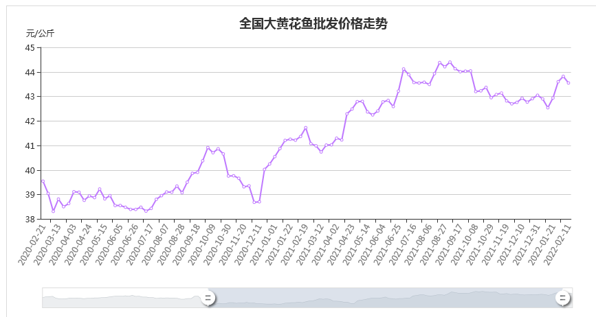 全國大黃花魚批發(fā)價格尚處于高位(國家商務(wù)部數(shù)據(jù)中心)