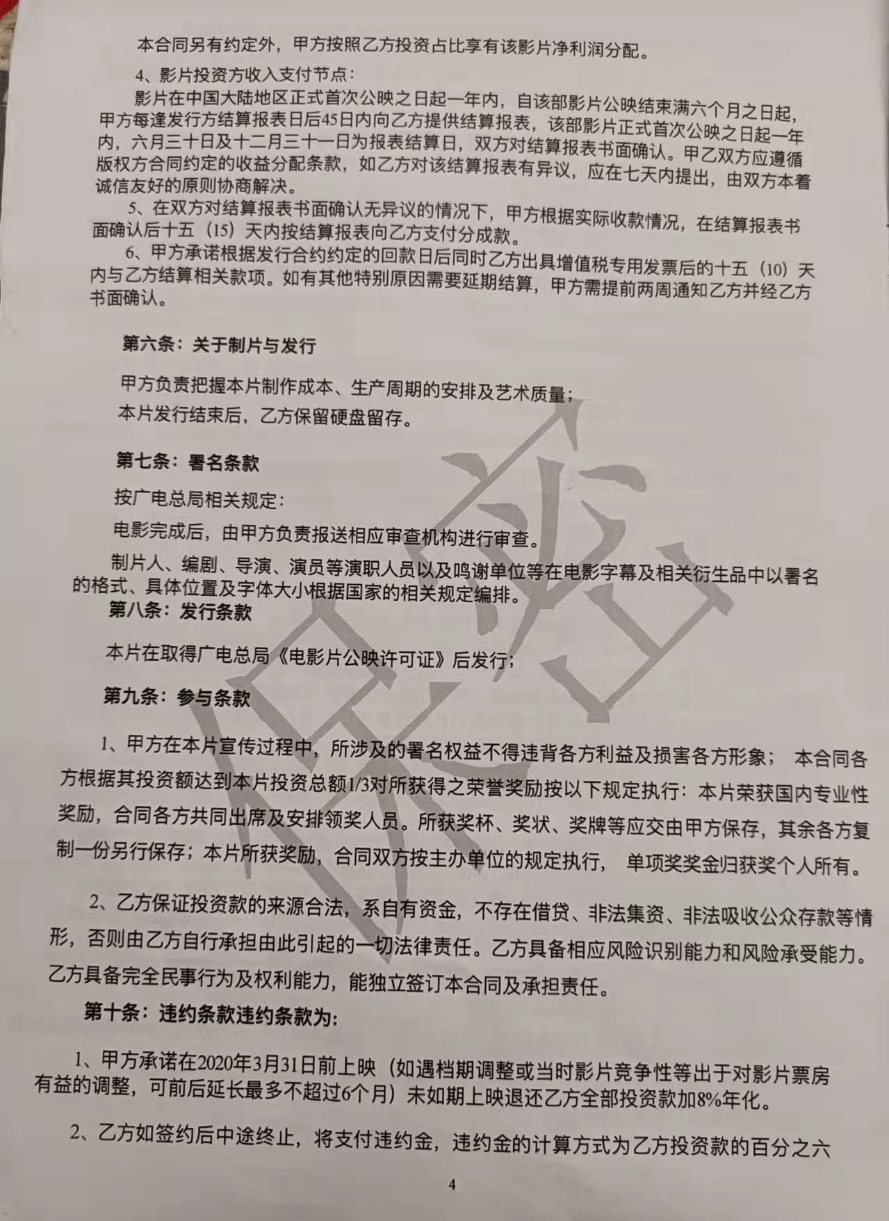 投資協(xié)議關(guān)于上映時間的約定,來源:投資者供圖