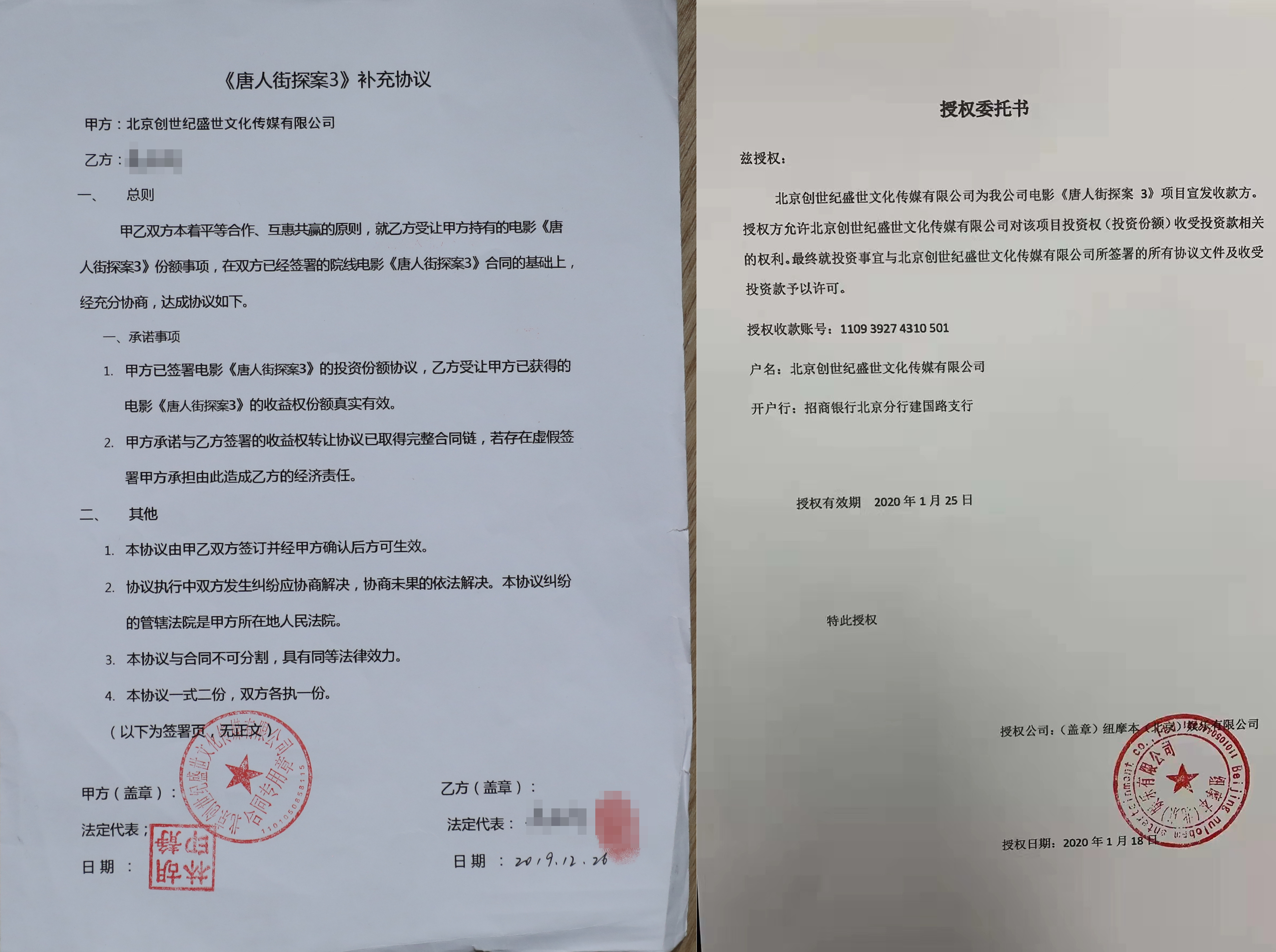 左為黃女士提供的補充協(xié)議,右為其他投資者提供的《授權(quán)委托書》