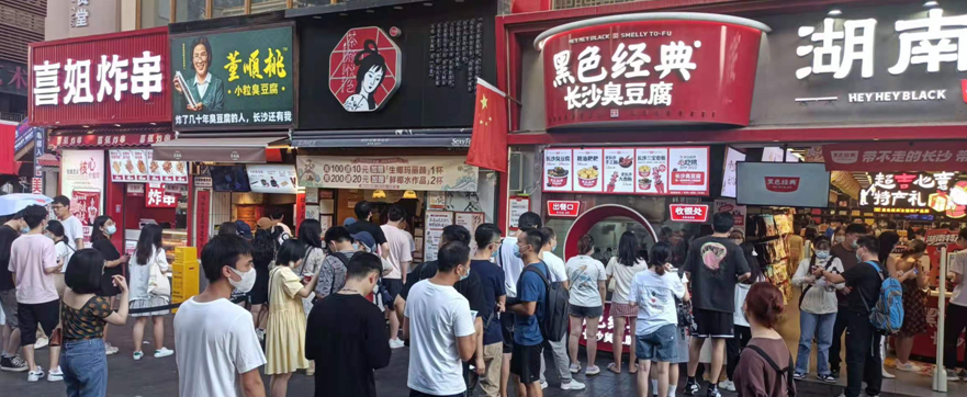 國(guó)慶長(zhǎng)假期間,餐飲業(yè)火爆異常,記者隨機(jī)走訪湖南長(zhǎng)沙多地,看到連鎖餐飲、網(wǎng)紅打卡地紛紛推出預(yù)制菜品,包含唐人神大香腸、火宮殿臭豆腐、金牌小龍蝦、梅菜扣肉餅等。