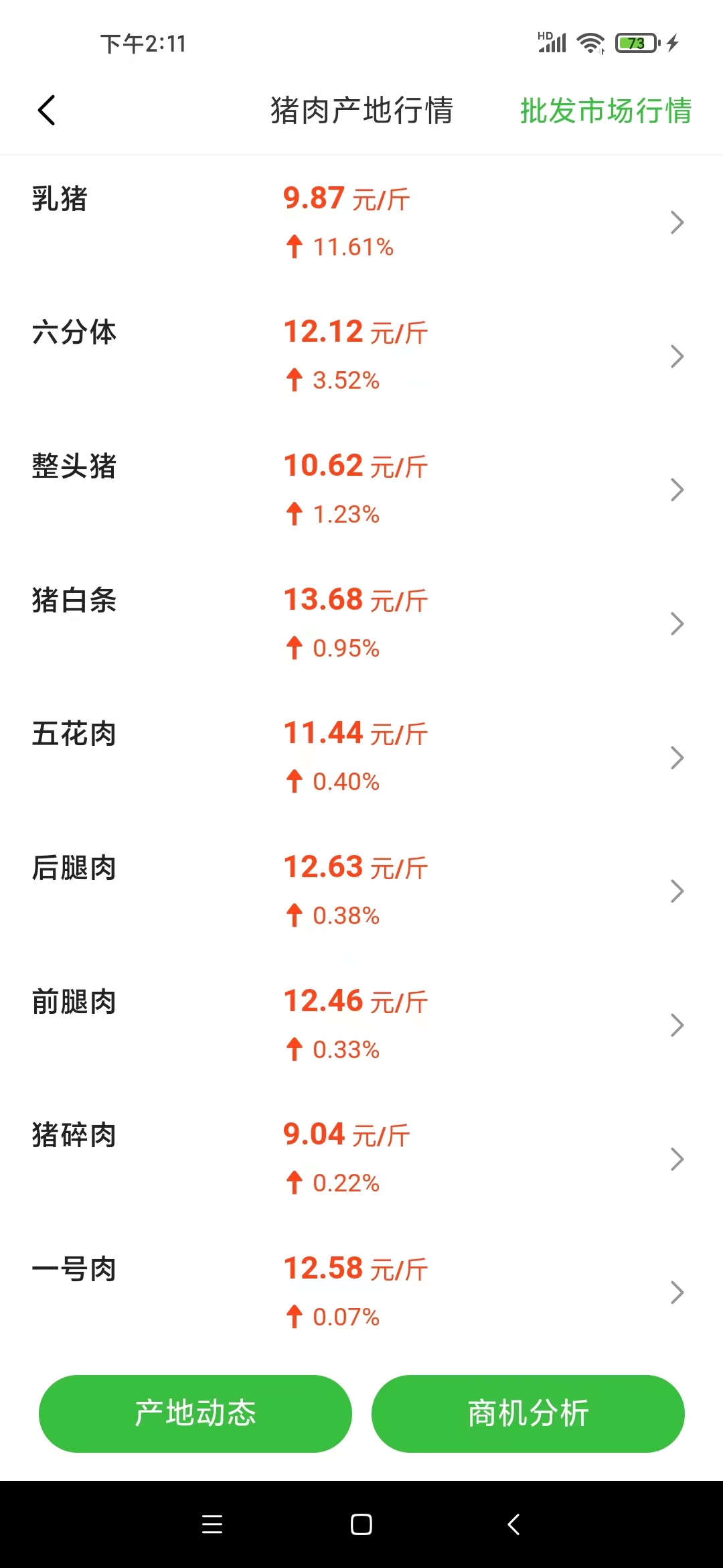 12月4日多地生豬各類(lèi)肉品價(jià)格略有上漲(供圖:惠農(nóng)網(wǎng))