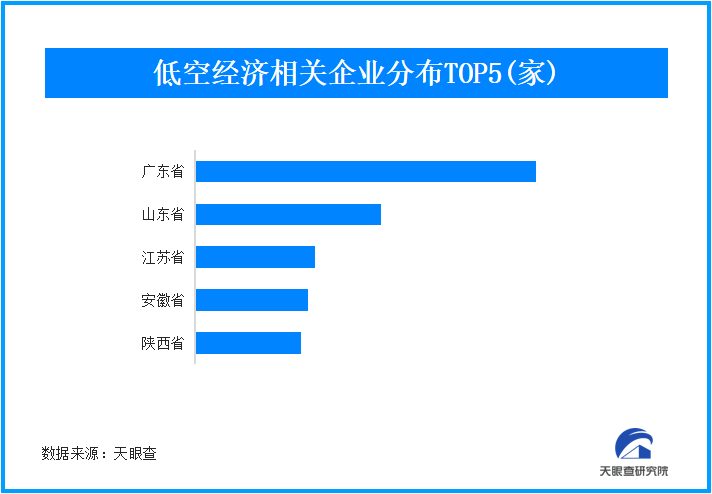 從地域分布來看,廣東位居低空經(jīng)濟(jì)相關(guān)聯(lián)企業(yè)數(shù)量榜首,達(dá)1萬余家,占比15%;其次排第二位的為山東,擁有5800余家相關(guān)企業(yè);此外,江蘇、安徽、陜西緊跟其后,分別位居第三、第四和第五名。從成立時間來看,成立于1年-5年的相關(guān)企業(yè)占比達(dá)到36.9%,成立1年以內(nèi)的企業(yè)占比14.2%。