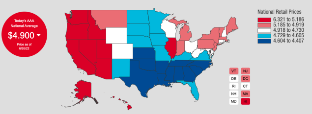 根據(jù)美國(guó)汽車(chē)協(xié)會(huì)(AAA)的數(shù)據(jù)顯示,6月26日全美平均油價(jià)已達(dá)到4.9美元每加侖。拜登提議的支持者表示,如果結(jié)合其他政策效應(yīng),暫停征收聯(lián)邦汽油稅后,每加侖汽油價(jià)格最多可下降1美元。