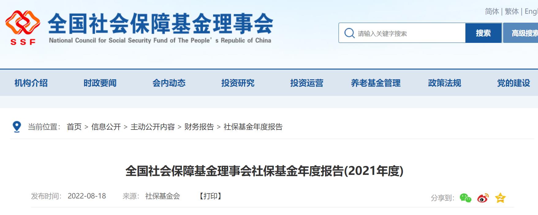 這是全國社會保障基金理事會8月18日發(fā)布的《全國社會保障基金理事會社保基金年度報告(2021年度)》中披露的數(shù)據(jù)。