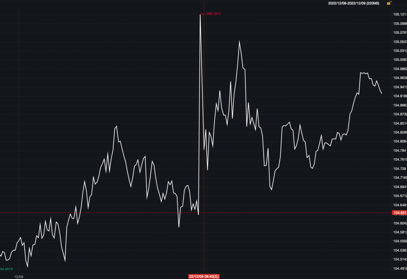 受到PPI數(shù)據(jù)超出預(yù)期的影響,美元指數(shù)盤中快速拉升,一度沖破105關(guān)口,最高探至105.1932,但隨后公布的另一項(xiàng)通脹指標(biāo)又促使美元指數(shù)回吐大部分漲幅,再次跌落105關(guān)口。