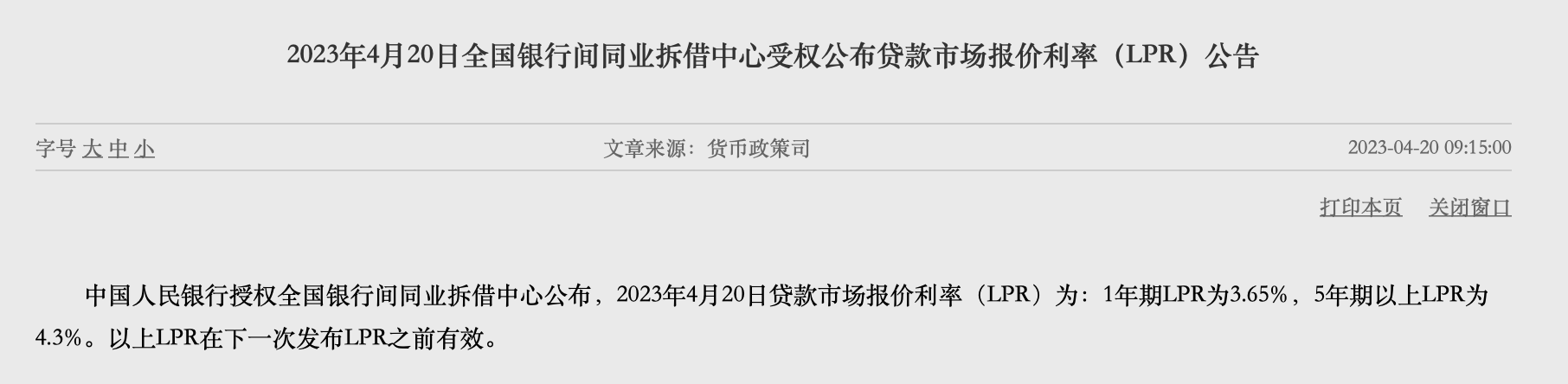 4月20日,中國人民銀行授權(quán)全國銀行間同業(yè)拆借中心公布,1年期LPR為3.65%,5年期以上LPR為4.3%。兩個品種報價均維持前值。截至目前,LPR已連續(xù)8個月原地踏步。