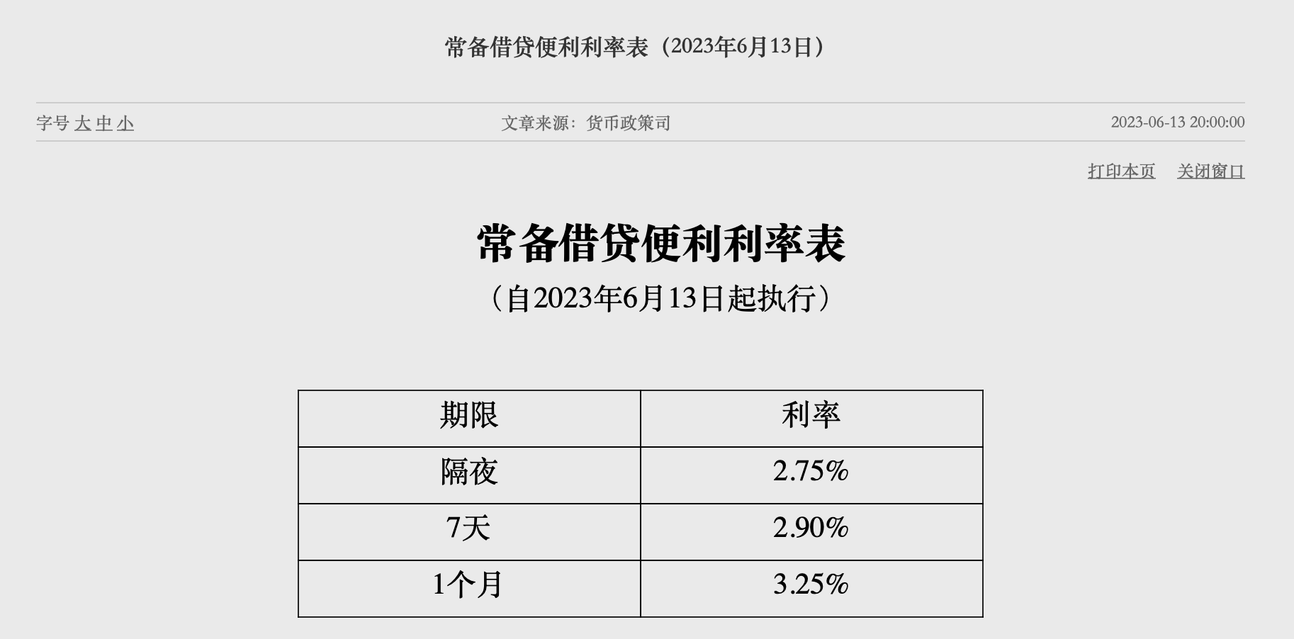 6月13日晚間,央行下調(diào)常備借貸便利利率,隔夜期下調(diào)10個基點至2.75%,7天期下調(diào)10個基點至2.9%,1個月期下調(diào)10個基點至3.25%。