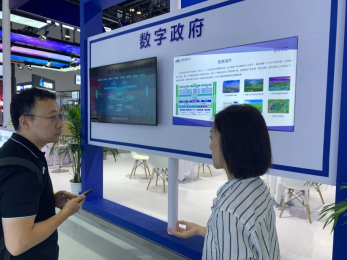 廣東東華發(fā)思特軟件有限公司售前咨詢顧問(wèn)薛秋月(右)正在介紹東華軟件對(duì)于數(shù)字農(nóng)業(yè)、數(shù)字政府的支持 《證券日?qǐng)?bào)》記者韓昱/攝