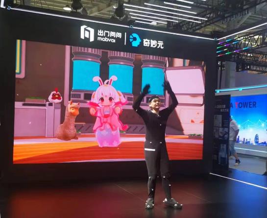 出門問問展區(qū)大屏幕前,身著動捕服裝的工作人員正跟隨音樂舞動身姿,她背后大屏幕上軟萌的3D數(shù)字人也隨之翩翩起舞。張佳欣介紹,奇妙元最輕量的技術(shù)解決方案,只用一個手機攝像頭就可以驅(qū)動數(shù)字人的動作、表情,用戶能夠讓企業(yè)像做PPT一樣輕松制作數(shù)字人視頻和直播。