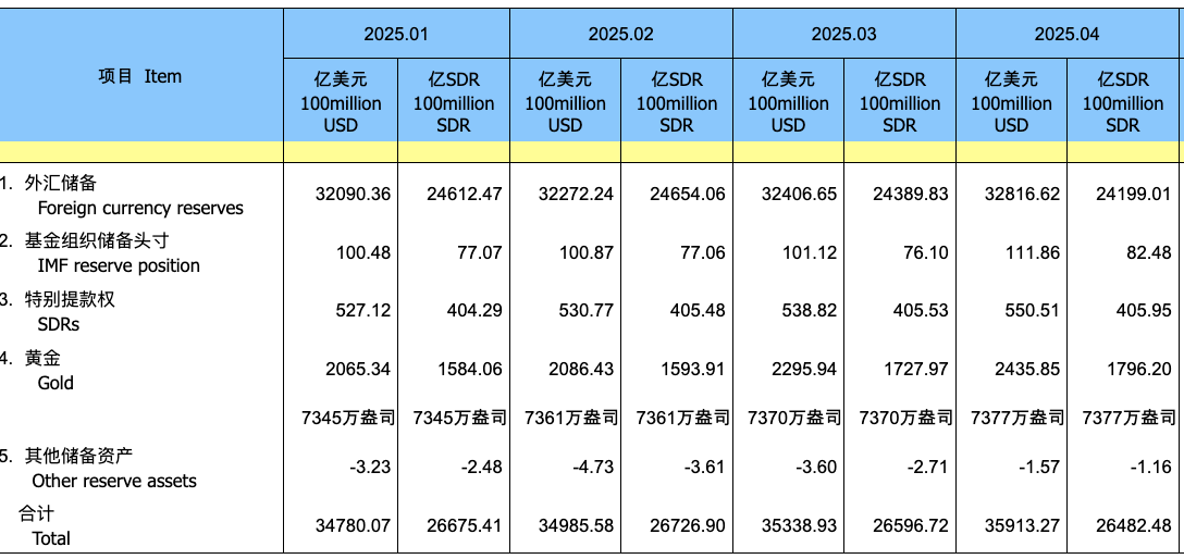 5月7日,中國人民銀行公布的數(shù)據(jù)顯示,中國2025年4月末黃金儲備為7377萬盎司,較3月末的7370萬盎司增加7萬盎司,連續(xù)六個月擴大黃金儲備。
