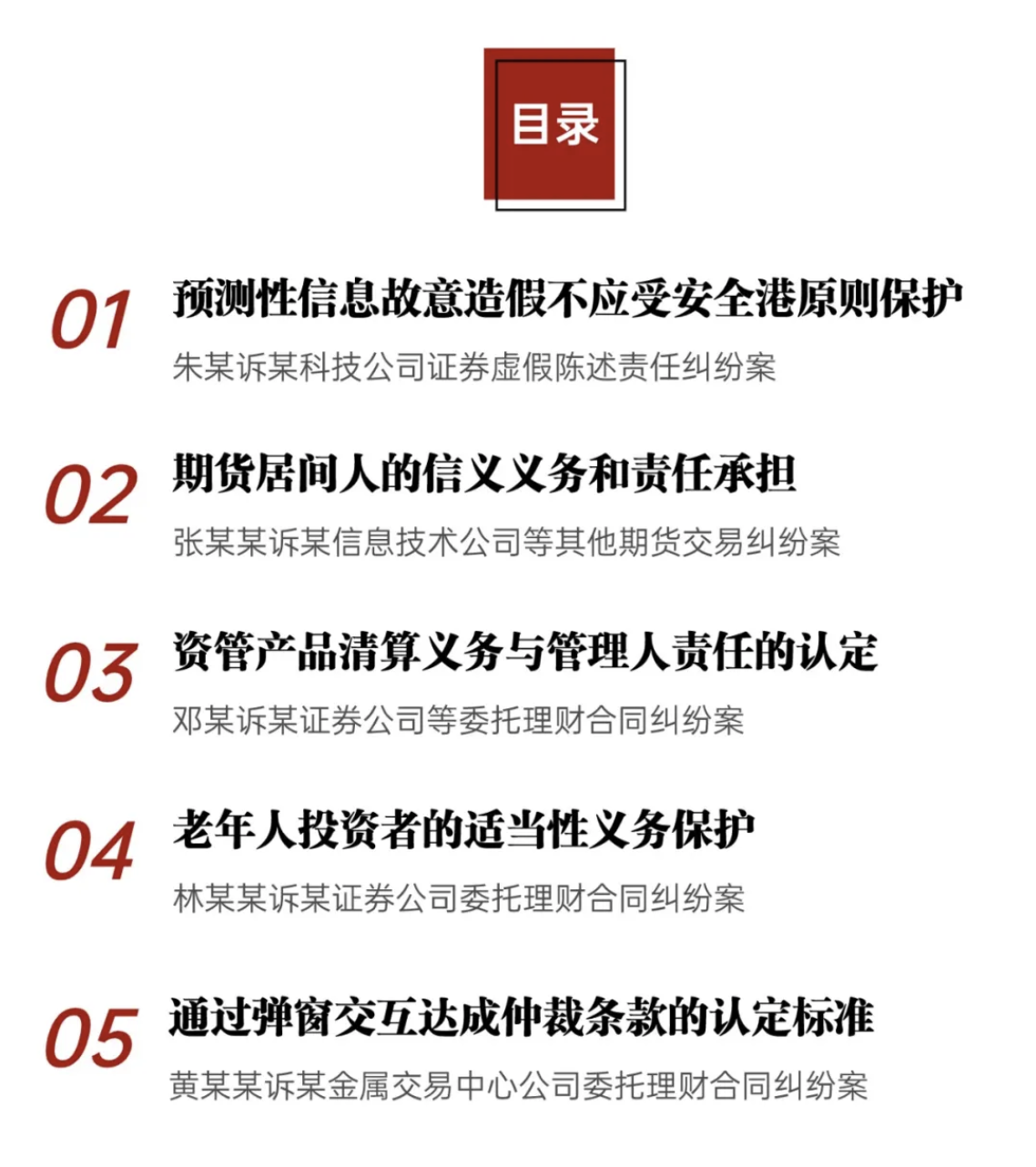 據(jù)上海金融法院5月15日消息,適逢“5·15全國投資者保護宣傳日”,上海金融法院精選五件投資者保護典型案例予以發(fā)布,涉及上市公司信息披露、期貨居間人法律義務、資管產(chǎn)品清算及賠償責任、老年人投資權(quán)益保護、在線平臺電子仲裁條款認定等問題,以進一步發(fā)揮金融司法裁判規(guī)則指引作用,在全社會倡導理性投資,強化投資風險意識,促進金融市場健康有序發(fā)展。