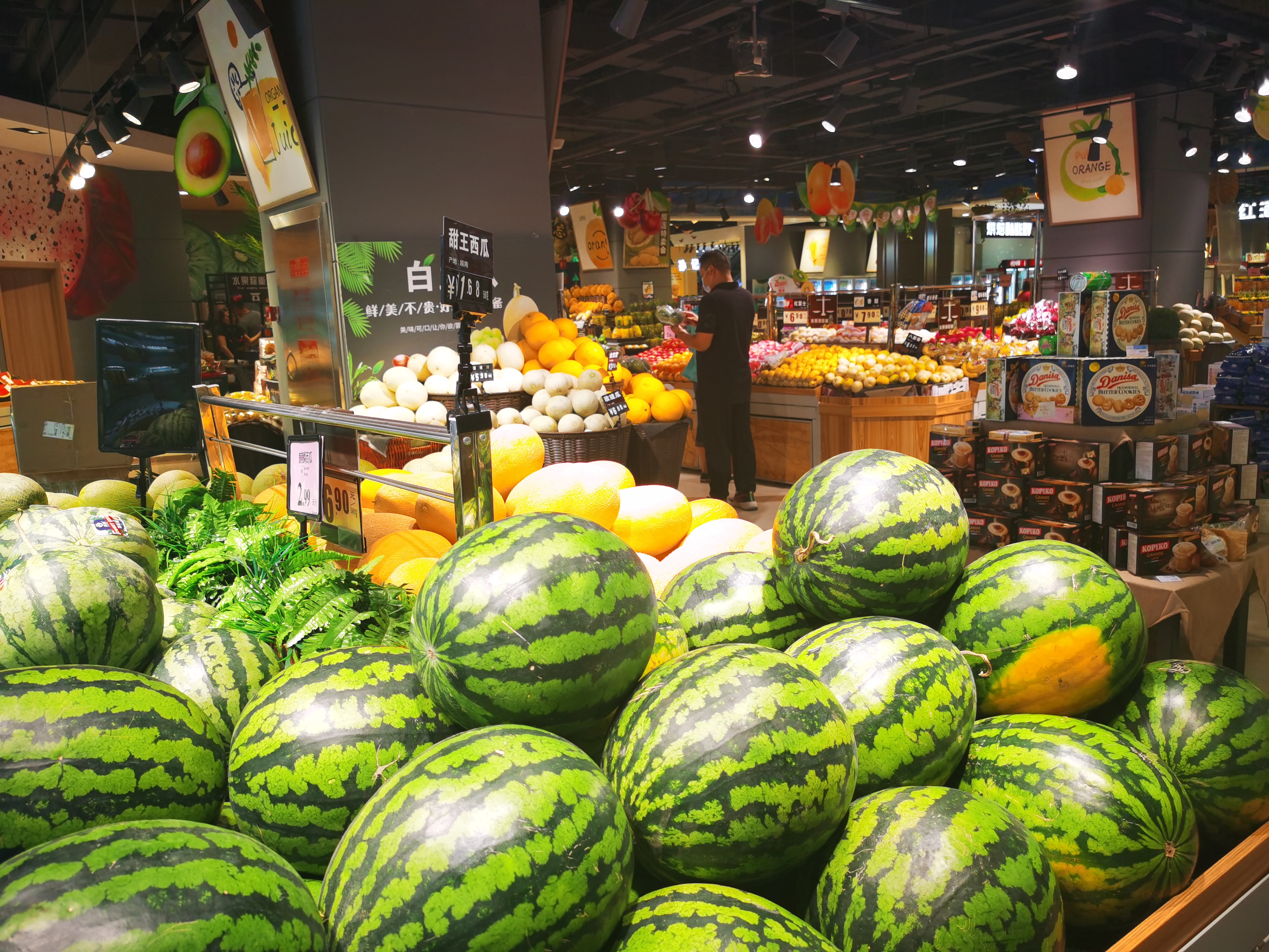 6月17日下午,沈陽(yáng)的氣溫攀升到了34攝氏度,在太原街中興商業(yè)的超市賣場(chǎng)中,各種商品琳瑯滿目。產(chǎn)自越南的甜王西瓜在這里的售價(jià)為1.68元/斤,新鮮的豬前腿肉售價(jià)為23.5/斤。在水產(chǎn)品柜臺(tái),有各式的海魚(yú)和淡水魚(yú),還有新鮮的生蠔、扇貝和鮑魚(yú)等海產(chǎn)品售賣。其中8-10頭的鮮活鮑魚(yú)售價(jià)僅為7元/頭,還買一送一。