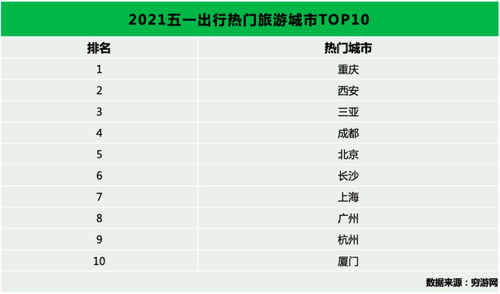 隨著五一假期臨近,國內(nèi)旅游熱度持續(xù)走高。近日,窮游網(wǎng)發(fā)布了《2021年五一旅游趨勢預(yù)測報(bào)告》。報(bào)告顯示,重慶、西安、三亞最受游客青睞,親子游熱度高漲且消費(fèi)能力突出,親子游在國內(nèi)的單次旅行消費(fèi)較2019年提高了37.8%。