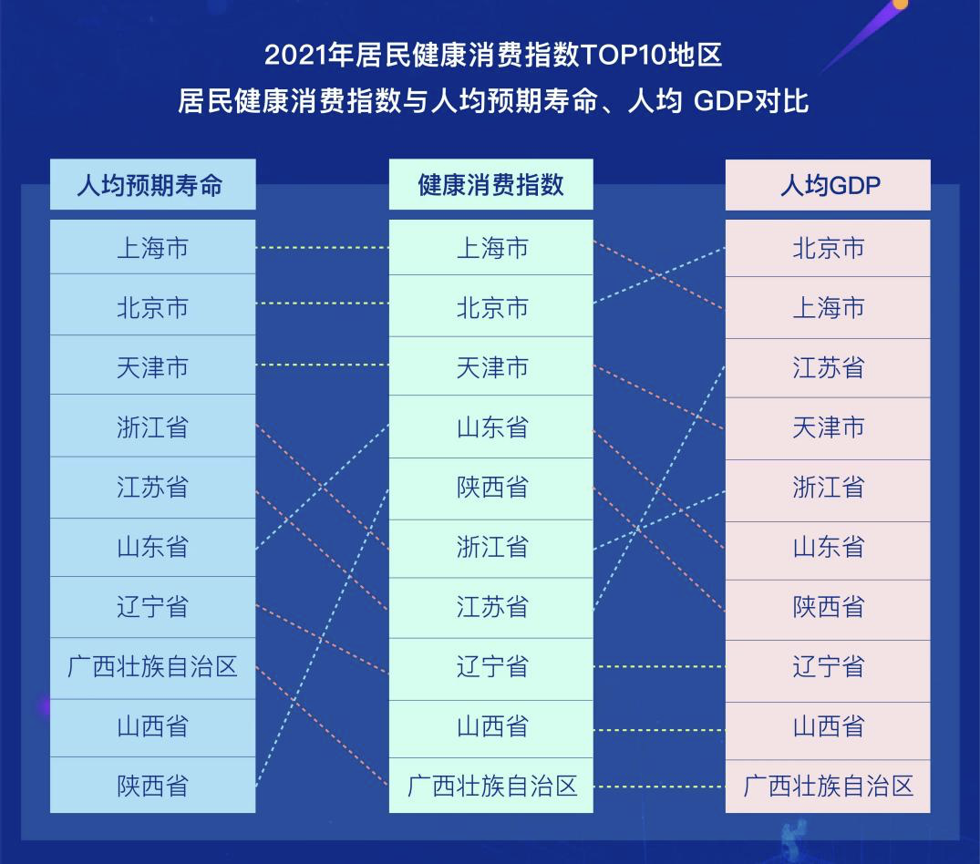 該指數(shù)旨在使用消費(fèi)大數(shù)據(jù)衡量不同地區(qū)居民消費(fèi)習(xí)慣對(duì)居民健康的影響,通過測(cè)算不同地區(qū)居民平均每日消耗煙酒、蔬菜瓜果和肉蛋奶等商品以及經(jīng)常參與體育鍛煉比例的具體數(shù)值,參考權(quán)威醫(yī)學(xué)實(shí)證研究得出上述消費(fèi)行為對(duì)于健康的影響系數(shù),進(jìn)而推算得來。