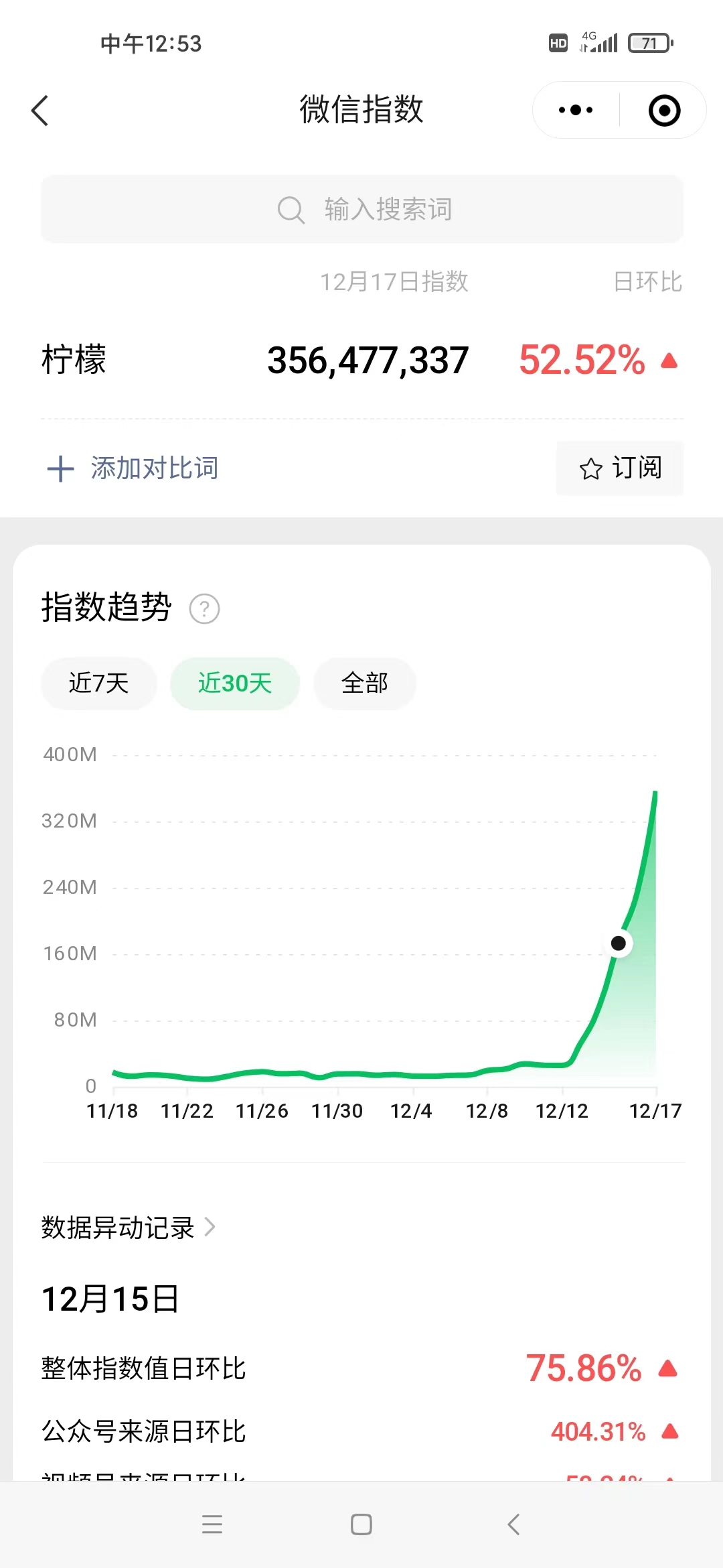 關(guān)鍵詞“檸檬”微信指數(shù)一路走高(供圖:微信)