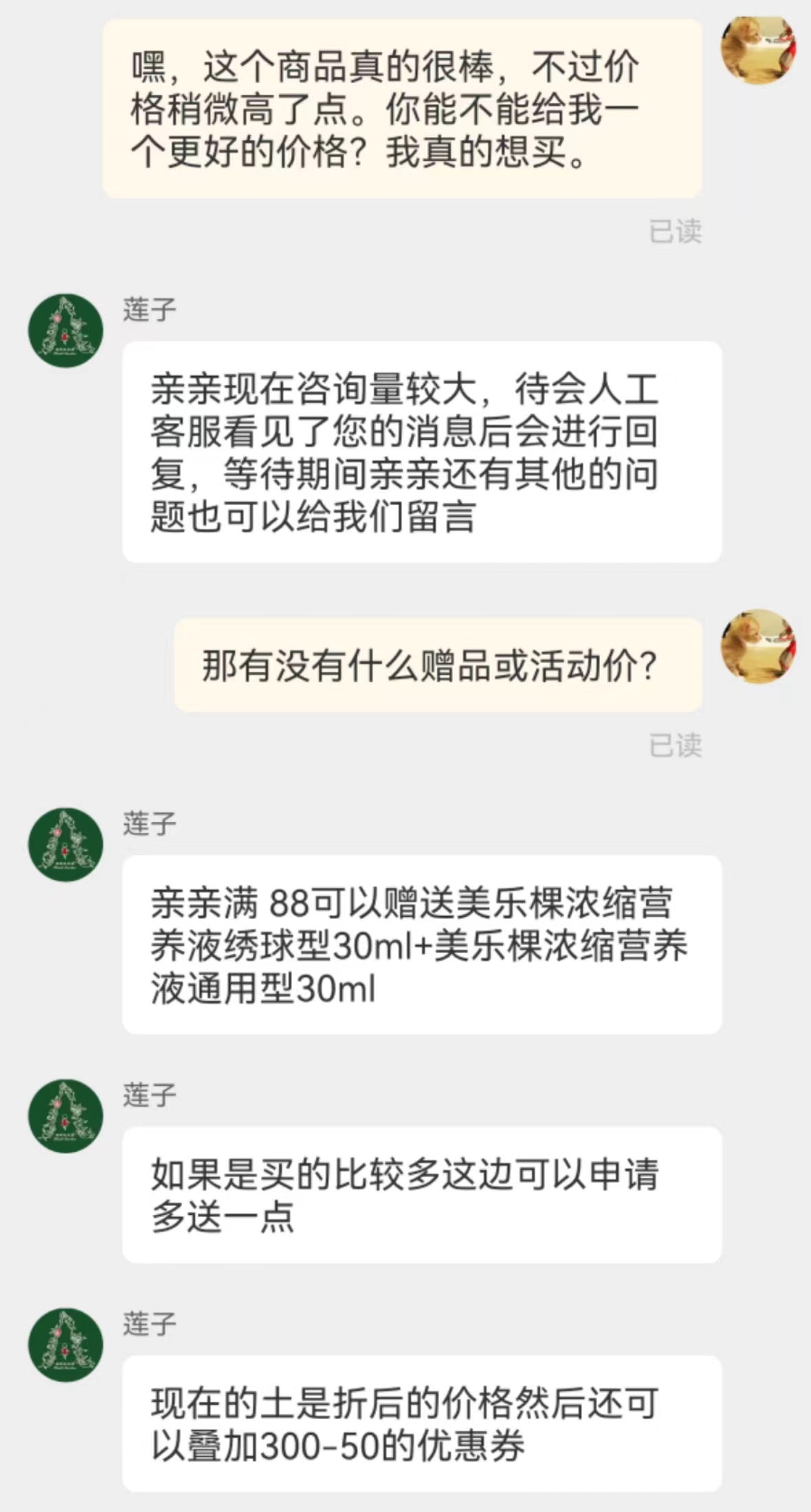 天貓也推出“AI講價(jià)小助手”,讓服務(wù)“卷”起來。該功能能通過智能算法,分析商品的歷史價(jià)格、市場趨勢以及賣家的定價(jià)策略,自動生成講價(jià)建議。《證券日報(bào)》記者隨機(jī)勾選商品加入購物車,AI講價(jià)小助手便自動與賣家進(jìn)行協(xié)商,并能通過贈品、活動價(jià)等迂回的方式與其“周旋”。