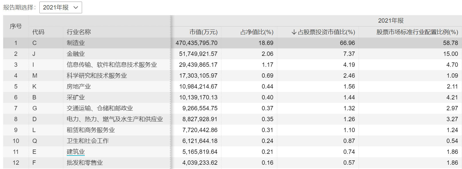 總體來(lái)看,去年四季度公募基金持有最多的依然是制造業(yè),占股票投資市值比近67%,比去年三季度提升了2.66個(gè)百分點(diǎn)左右,遠(yuǎn)遠(yuǎn)高于其他行業(yè)的配置。