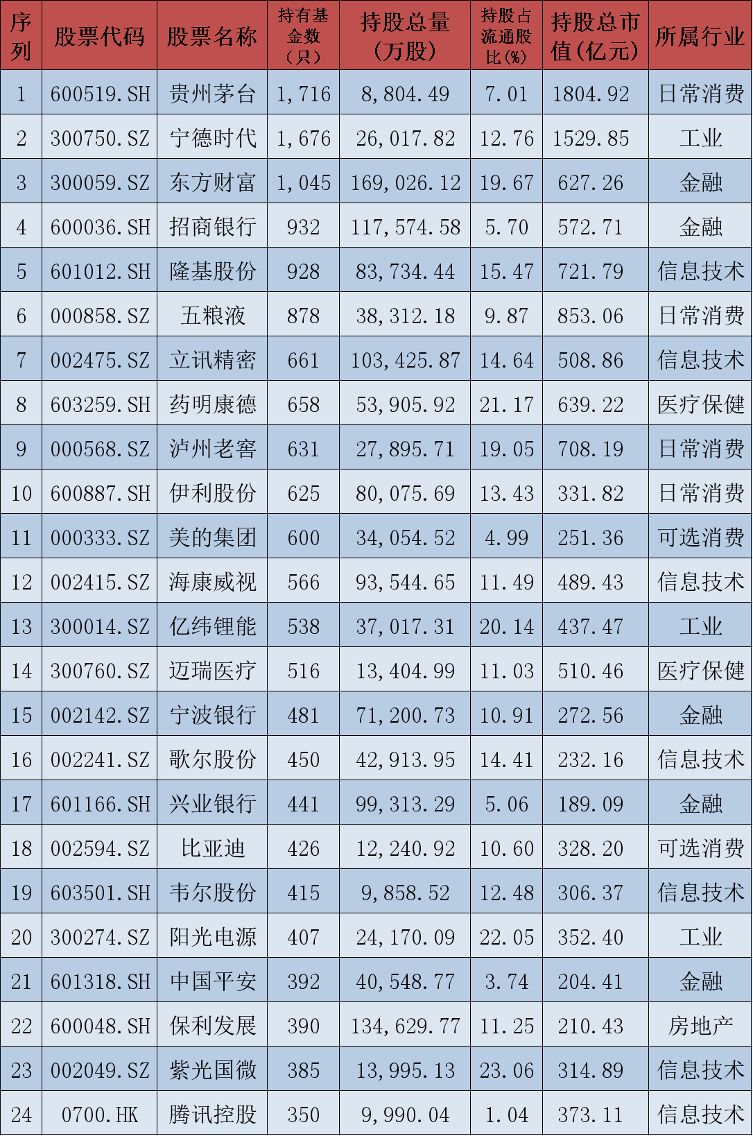 貴州茅臺(tái)憑借四季度更高持有基金數(shù)及持股總市值,打敗寧德時(shí)代成基金頭號(hào)重倉(cāng)股。