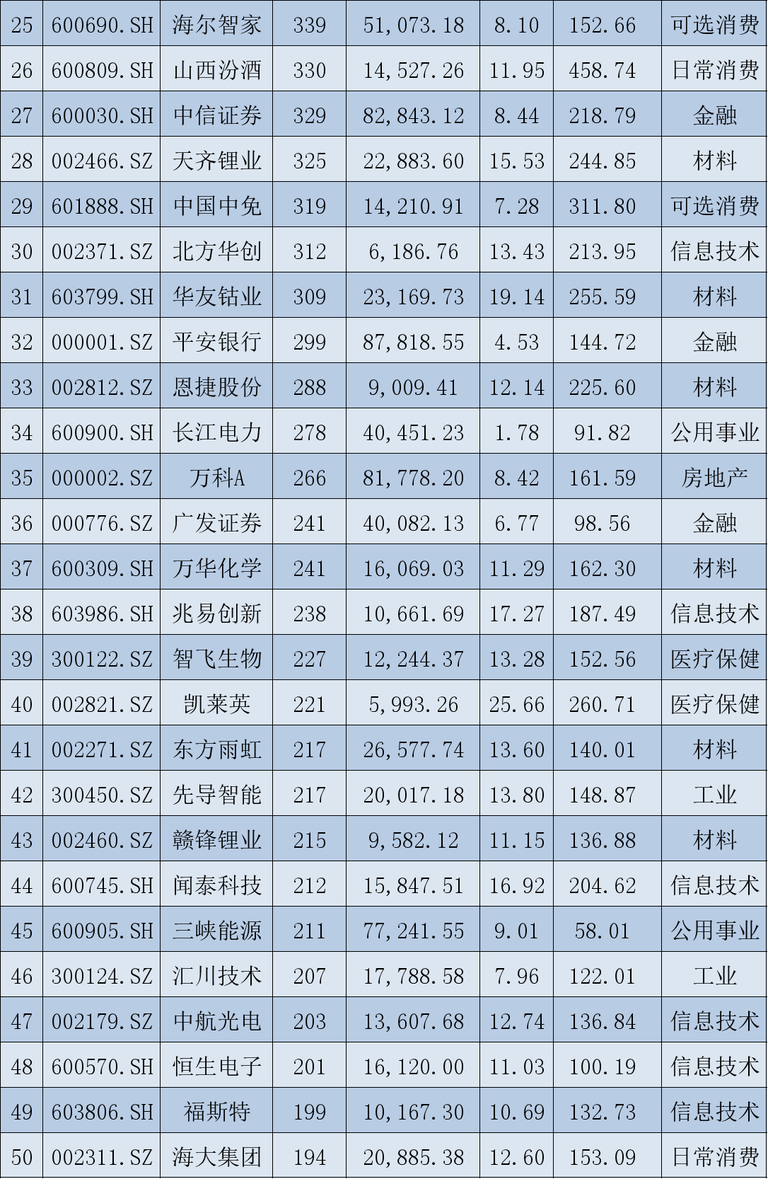公募基金2021年四季度前50名重倉(cāng)股名單:
