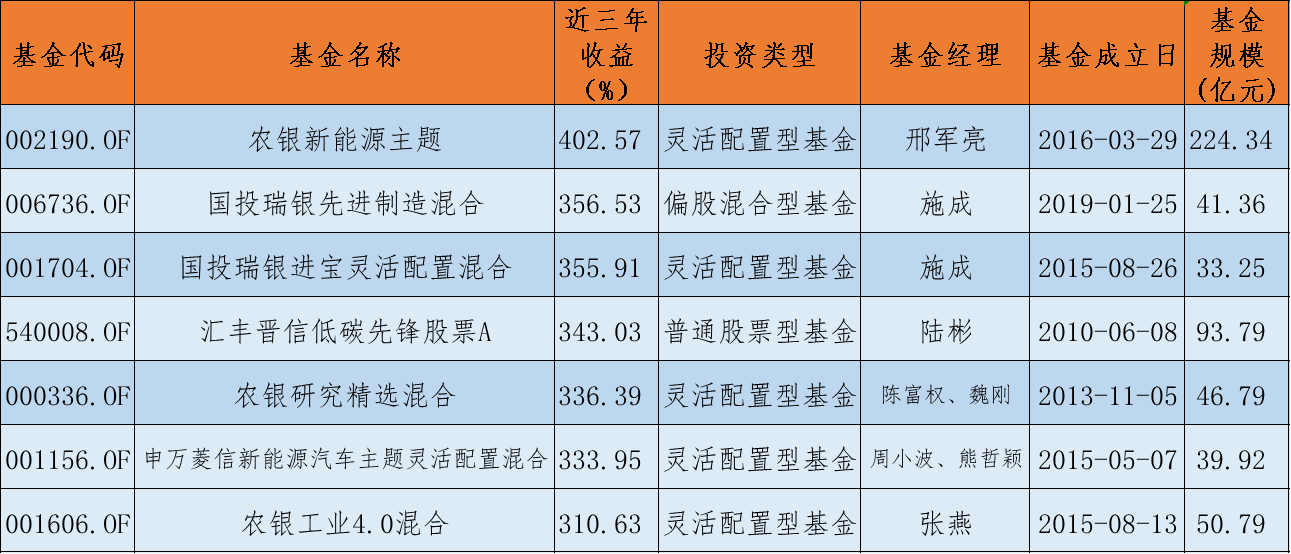 近三年收益率超300%的基金名單: