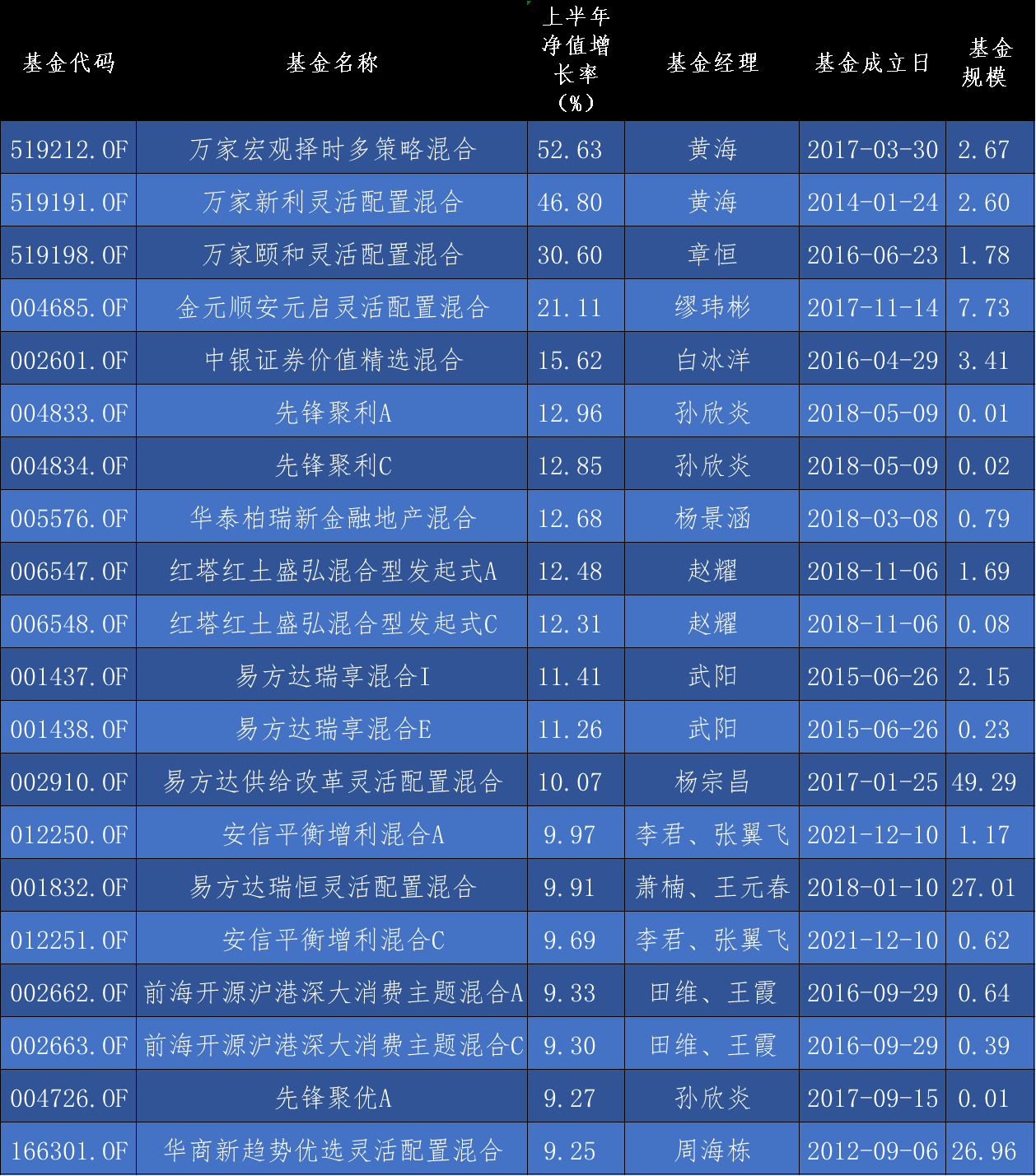 另外,章恒管理的萬家頤和靈活配置混合、繆瑋彬管理的金元順安元啟靈活配置混合的年內(nèi)收益率也超過20%,賺錢效應(yīng)明顯。包括上述基金在內(nèi),上半年收益率超過10%的主動權(quán)益類基金共計32只。