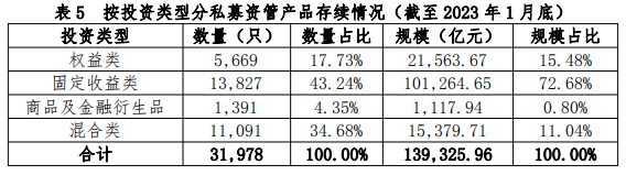 從投資類(lèi)型看,1月份備案私募資管產(chǎn)品數(shù)量最多、設(shè)立規(guī)模最大的為固定收益類(lèi)。
