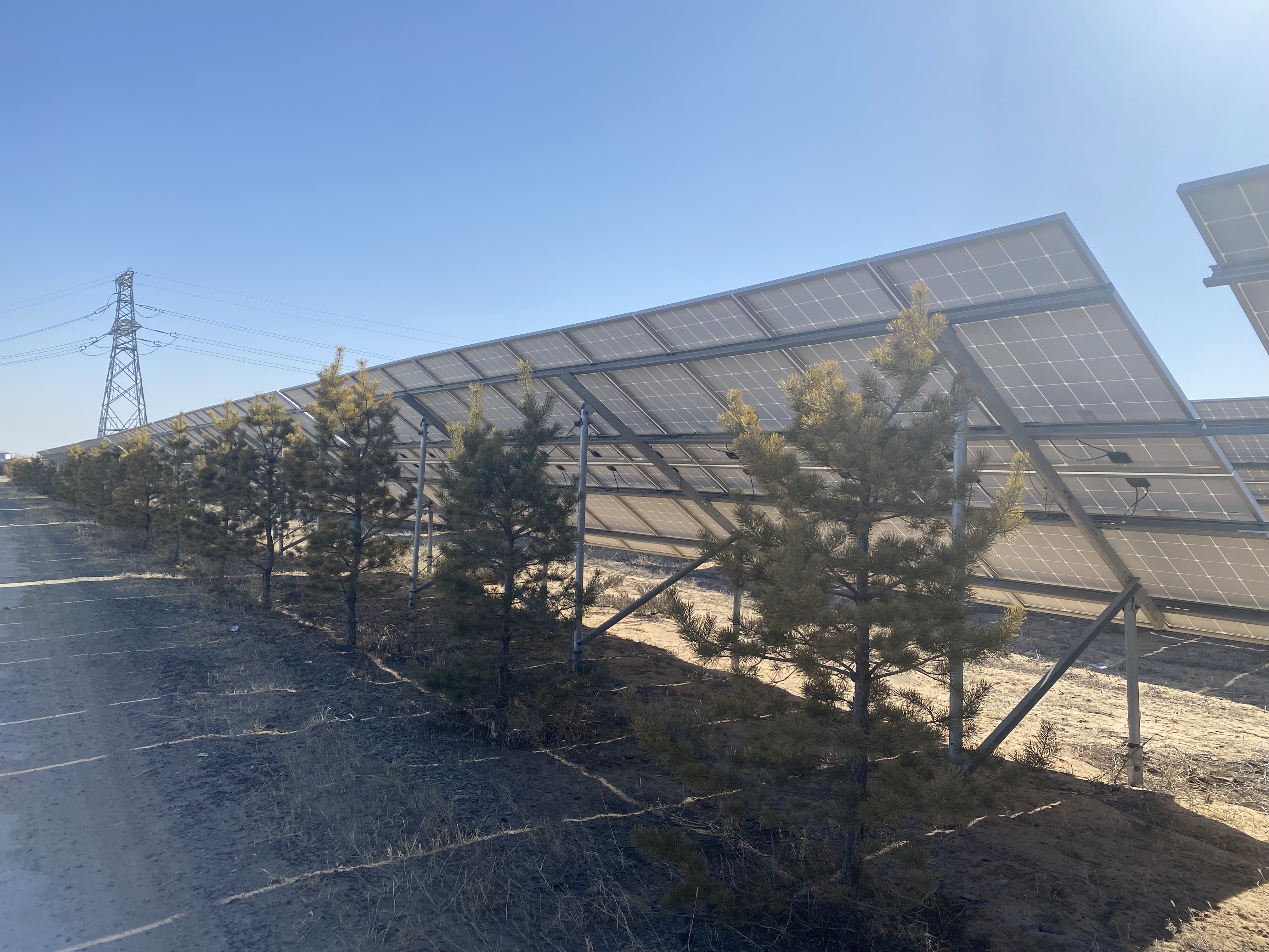 站在榆林光伏項目綜合樓屋頂放眼望去,數(shù)百萬塊深藍色光伏組件整齊排列、一望無垠,在陽光普照下熠熠生輝,源源不竭地把太陽光照轉換為潔凈電力,為經(jīng)濟發(fā)展注入澎湃動力。同時,“一肩雙挑”的光伏組件還和逾200萬株的樟子松、沙地柏等極具西部特色的綠色植被一起構成“林光互補”,為陜西省“綠色版圖”的擴大貢獻力量。