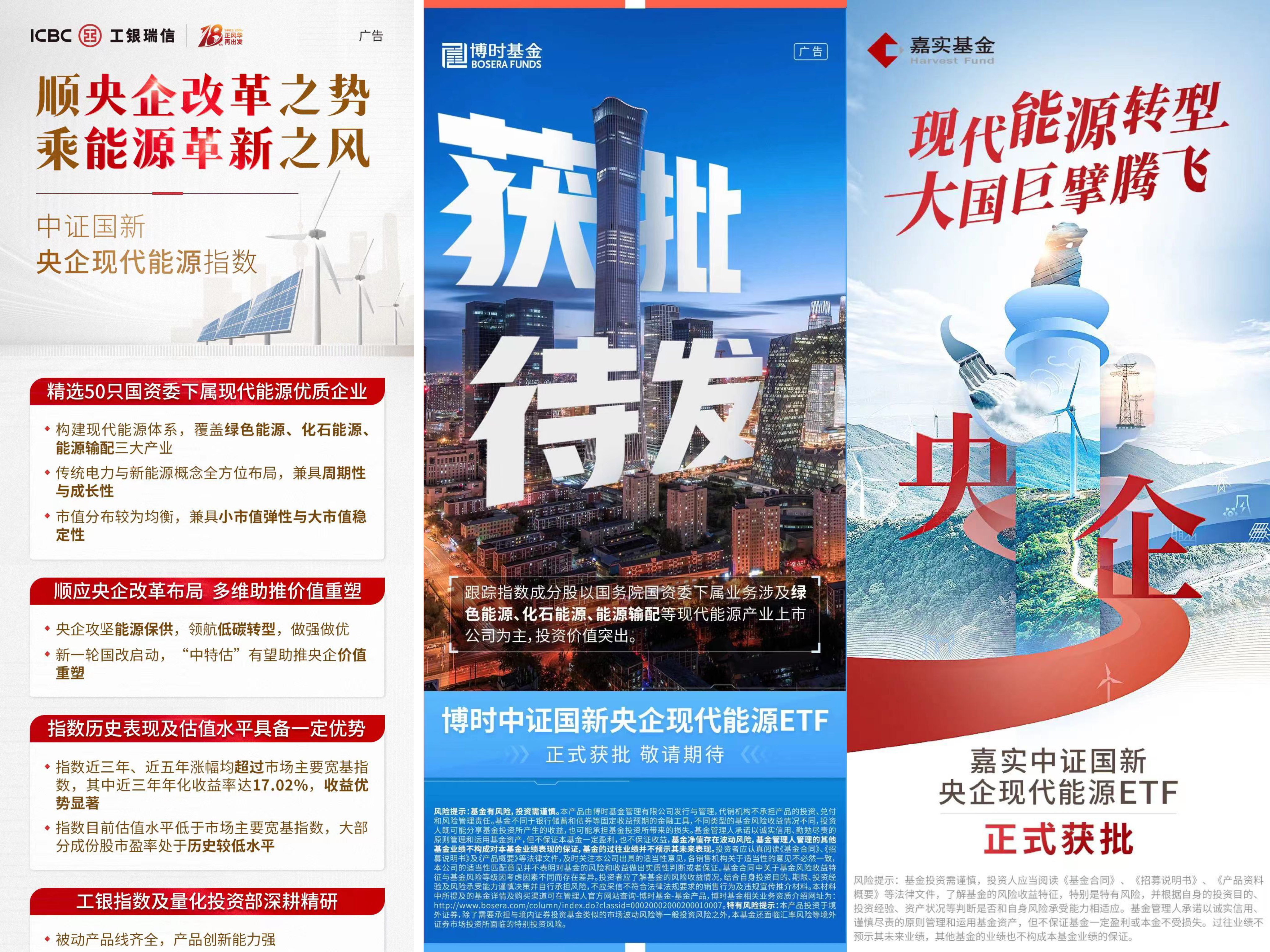 3只中證國新央企現(xiàn)代能源ETF的產(chǎn)品名稱分別是:博時中證國新央企現(xiàn)代能源ETF、嘉實中證國新央企現(xiàn)代能源ETF、工銀瑞信中證國新央企現(xiàn)代能源ETF。