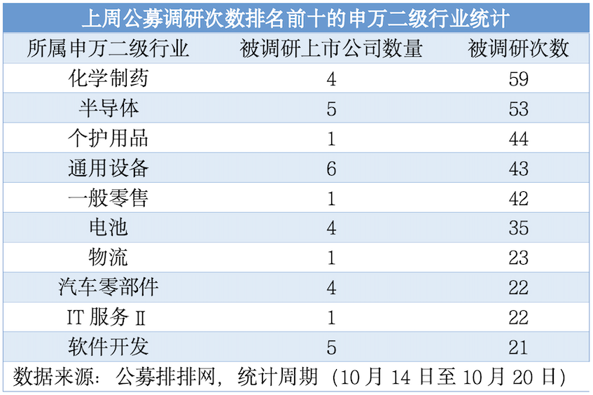 (上周公募調(diào)研次數(shù)排名前十的申萬二級行業(yè)統(tǒng)計)