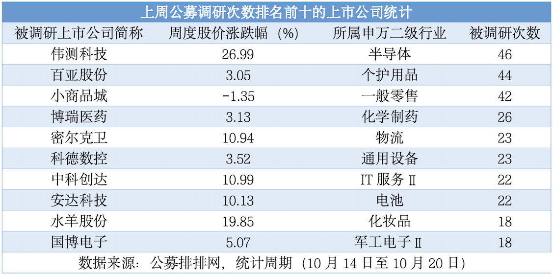 (上周公募調(diào)研次數(shù)排名前十的上市公司統(tǒng)計)