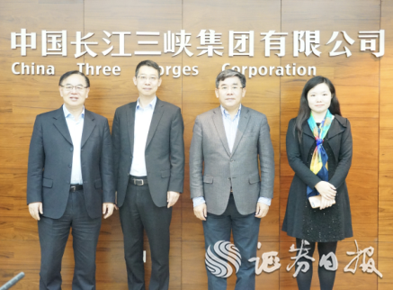 中國(guó)長(zhǎng)江三峽集團(tuán)公司黨組成員、總會(huì)計(jì)師楊亞(左一),集團(tuán)公司黨組成員、副總經(jīng)理、中國(guó)長(zhǎng)江電力股份公司總經(jīng)理張定明(右二)與證券日?qǐng)?bào)記者董少鵬(左二)、新華社記者趙曉輝(右一)在采訪后合影。