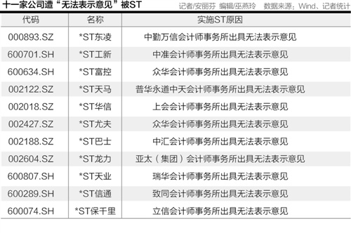 除了*ST烯碳,今年以來已有11家上市公司因為被出具非標意見而被ST處理。