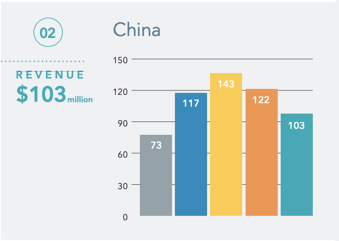 與此同時,自2018財年開始,澳佳寶在中國區(qū)的營收就一路下滑,從2018年的1.43億美元下降到2020年的1.03億美元。