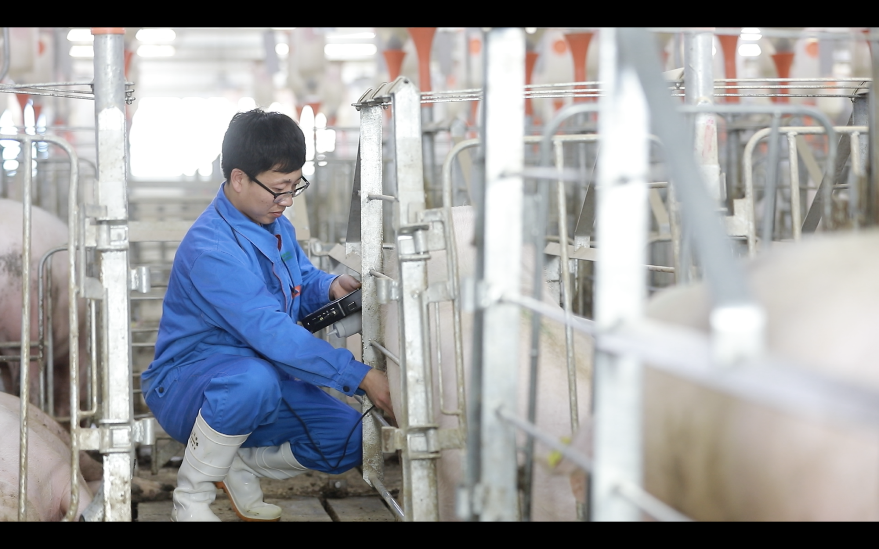 圖為新希望六和股份有限公司豬場(chǎng)的員工工作照片和豬場(chǎng)內(nèi)部照片(公司供圖)