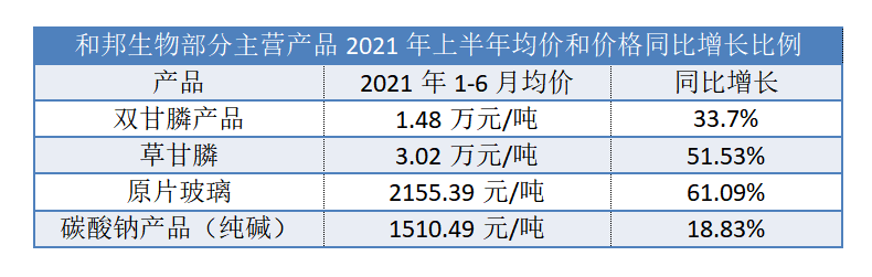 對于2021年上半年經(jīng)營業(yè)績大幅增長的原因,和邦生物表示,從外部環(huán)境來看,主要受益于環(huán)保、2020年度疫情對落后產(chǎn)能的進(jìn)一步出清以及產(chǎn)能擴(kuò)張限制,疊加下游需求增長,純堿、玻璃銷售價格大幅上漲。同時還疊加下游農(nóng)業(yè)產(chǎn)業(yè)的需求增長和新作物品種的投放,外加農(nóng)產(chǎn)品價格上漲,農(nóng)戶種植積極性提升等因素的影響,使得草甘膦需求旺盛,價格上漲。從公司內(nèi)部角度來看,和邦生物基于對2021年度產(chǎn)品行情的趨勢判斷并開展系列準(zhǔn)備工作、擬定可供執(zhí)行的生產(chǎn)計劃并實(shí)現(xiàn)生產(chǎn)按計劃高產(chǎn)、穩(wěn)定運(yùn)行,從而保證了銷售的穩(wěn)步提升。公司還稱,通過不斷的產(chǎn)能、技術(shù)挖潛,在2020年度完成了雙甘膦升級優(yōu)化項(xiàng)目,從而提升了產(chǎn)能利用率及成本控制能力,使公司的產(chǎn)品競爭力和盈利水平進(jìn)一步提高。