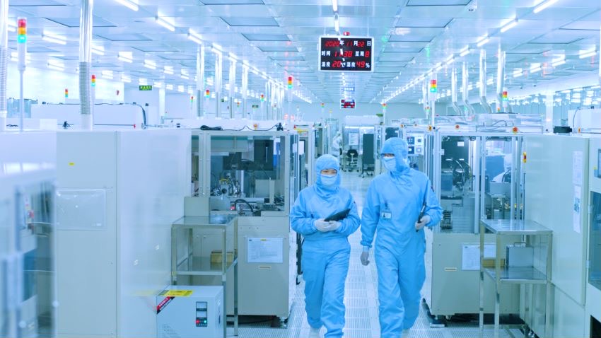 《證券日報》記者參觀了公司一流的光刻車間,看到潔凈的車間內(nèi)整齊地擺放著光刻工藝設(shè)備,少數(shù)穿著白色防護(hù)服的車間工作人員,正在認(rèn)真細(xì)致地檢查著微小的芯片。
