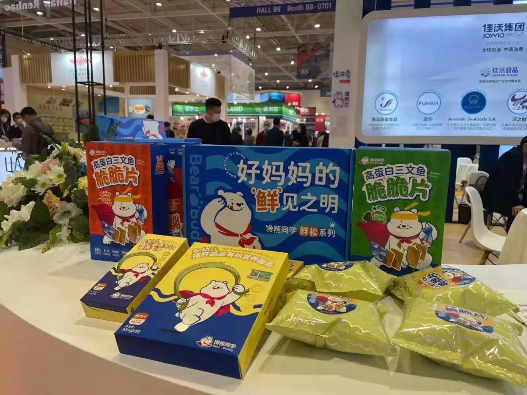 在3R食品方面,佳沃食品針對(duì)母嬰客戶群體推出了高營養(yǎng)兒童食品品牌“饞熊同學(xué)”,新產(chǎn)品“三文魚鮮松”“三文魚脆脆片”等優(yōu)質(zhì)蛋白產(chǎn)品,并在第25屆中國國際漁業(yè)博覽會(huì)上亮相。吳爽介紹相關(guān)情況:“目前,‘饞熊同學(xué)’產(chǎn)品已在天貓、京東等電商平臺(tái)銷售,獲得市場(chǎng)廣泛認(rèn)可。”