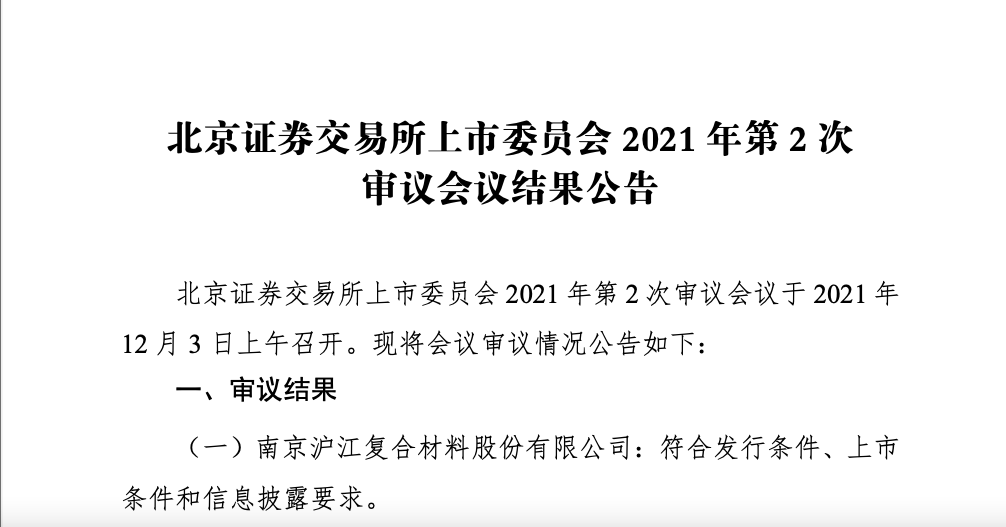 12月3日,北交所上市委第二場(chǎng)會(huì)議審議結(jié)果出爐:滬江材料符合發(fā)行條件、上市條件和信息披露要求。這是北交所上市委履職后審議的第二個(gè)項(xiàng)目;滬江材料也成為北交所設(shè)立以來(lái),第二家按照注冊(cè)制規(guī)定申請(qǐng)公開(kāi)上市的公司。