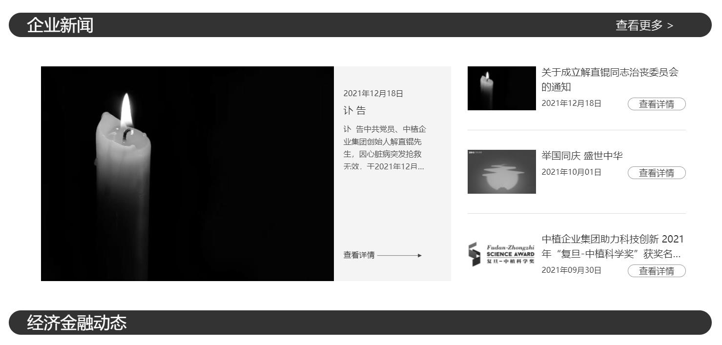 目前,中植集團官網(wǎng)頁面已調(diào)整為黑白色。