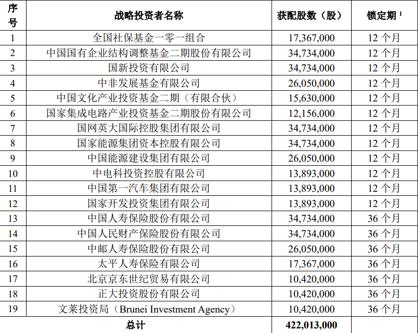 從中國移動的戰(zhàn)略配售方面來看,陣容同樣“豪華”,戰(zhàn)略投資者的選擇在充分考慮投資者資質(zhì)以及和發(fā)行人長期戰(zhàn)略合作關系等因素后綜合確定,最終由包括社?;稹{(diào)基金、國新投資、國家電網(wǎng)、國家能源集團、國家電網(wǎng)、國家能源集團在內(nèi)的19家機構組成,累計獲配4.22億股,累計斥資243億元,約占綠鞋全額行使后發(fā)行總量的43.39%。其中還吸引了中國人壽、人保財險、中郵人壽、太平人壽四家保險機構。