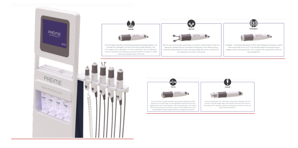 華東醫(yī)藥此次引進(jìn)的Préime DermaFacial是一款集螺旋真空、微晶磨皮、微電流、射頻、超聲五種先進(jìn)技術(shù)為一體的多功能面部皮膚管理平臺。該產(chǎn)品配備有AquaB、VibroX、MicroT、Collagen+、UltraB五個手柄,搭配專屬護(hù)理產(chǎn)品和治療頭使用,可針對不同客戶需求定制個性化護(hù)理方案。隨著非入侵式護(hù)膚設(shè)備與醫(yī)美項目聯(lián)用成為行業(yè)熱門趨勢與共識,Préime DermaFacial面臨廣闊的市場推廣和運用空間。