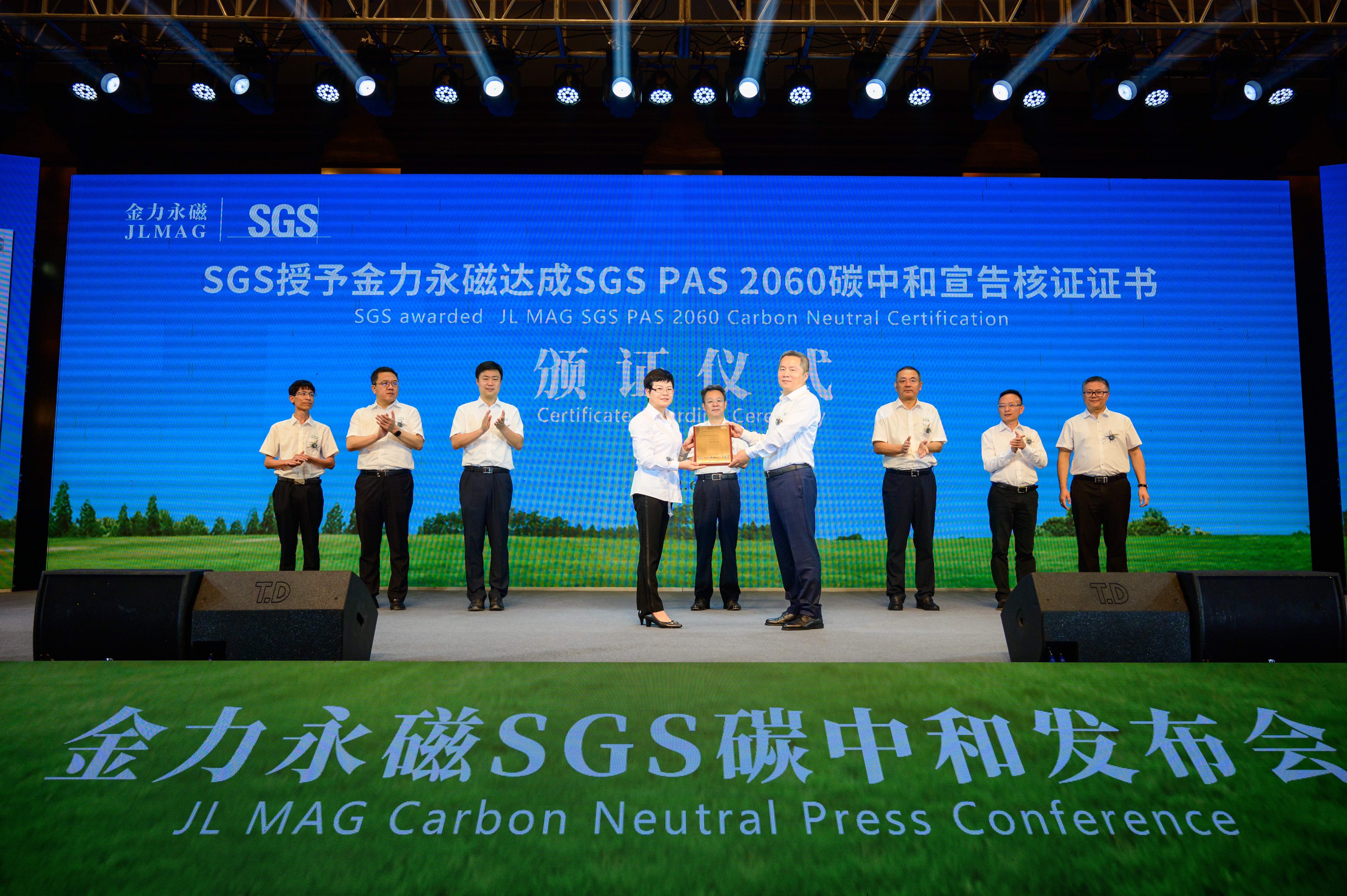 6月30日,稀土永磁材料生產(chǎn)商江西金力永磁科技股份有限公司(以下簡稱“金力永磁”)宣布,公司榮獲稀土永磁行業(yè)全球首張由國際公認(rèn)的測試、檢驗(yàn)和認(rèn)證機(jī)構(gòu)SGS頒發(fā)的PAS 2060碳中和達(dá)成宣告核證證書。