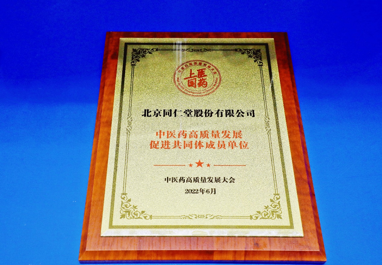 為推動落實《“十四五”中醫(yī)藥發(fā)展規(guī)劃》,大會舉行了“中醫(yī)藥高質(zhì)量發(fā)展促進共同體”成立儀式,作為中醫(yī)藥高質(zhì)量發(fā)展促進共同體成員單位,同仁堂股份副總經(jīng)理張春友代表公司接受大會主席張伯禮院士授牌,與醫(yī)藥界同仁一道把中醫(yī)藥偉大寶庫“繼承好、發(fā)展好、利用好”,為健康中國建設做出更大貢獻。