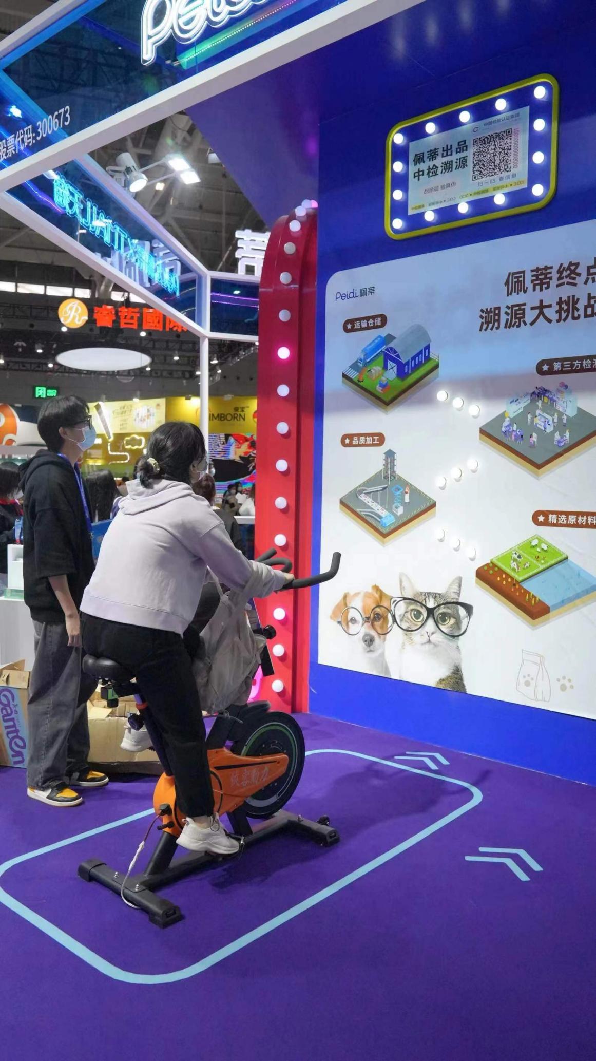 展會現(xiàn)場,佩蒂酷炫、潮流的展陳設(shè)計隨手一拍即出片,別出心裁的互動游戲也給現(xiàn)場用戶帶來許多樂趣和驚喜。只要掃碼成為佩蒂星球會員,便可暢玩四款互動游戲:齒能區(qū)狗狗牙齒保衛(wèi)戰(zhàn)、好適嘉區(qū)快把我的98K拿來、佩蒂星球幸運娃娃機、點亮佩蒂中檢溯源動感單車等,參與游戲還有機會獲得佩蒂準(zhǔn)備的幸運禮包。